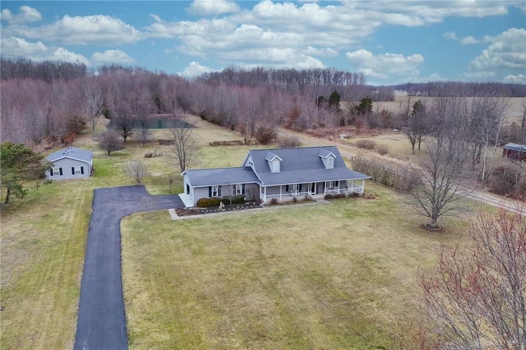 This 2350 square feet custom-built Cape Cod sits gracefully on 5 private acres, complete with a picturesque pond that creates a peaceful, country setting. A welcoming full-length front porch with a screened in area sets the tone for relaxed living while the blacktop driveway leads to both an over sized attached garage and an impressive 20X40 detached garage which includes 200 sq ft of finished space-perfect for hobbies, storage or a workshop. The home offers 3 spacious bedrooms and 2 full baths, thoughtfully designed for comfort and functionality. The kitchen has an abundance of wood cabinets and a newer quartz counter top. The bright sun room provides the perfect spot to enjoy morning coffee with serene views. With its classic Cape Cod charm, modern conveniences and expansive outdoor setting, this property offers the perfect blend of privacy, practicality and timeless style.