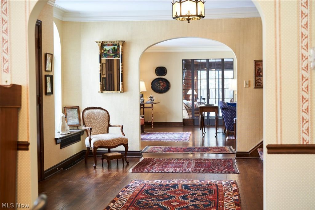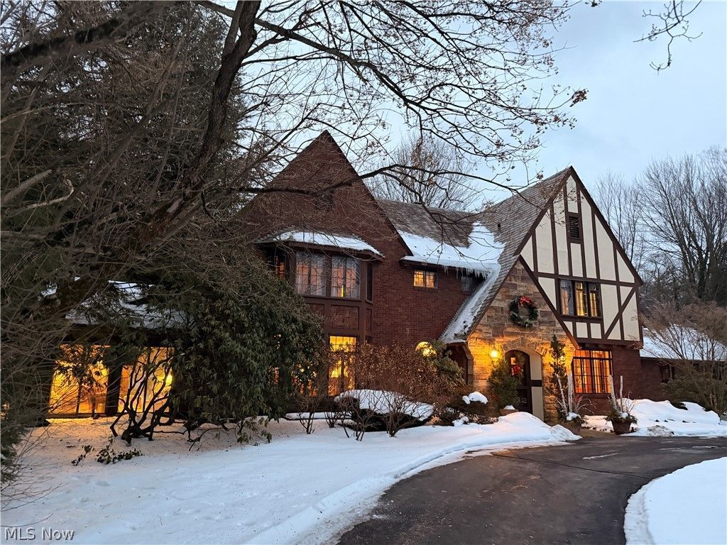 In the heart of Fairlawn Heights, this 1929 Tudor offers the rare combination of architectural pedigree and everyday livability. Set on nearly one acre, the property unfolds with a circular drive, level grounds, & a sense of quiet presence that defines West Akron's most established addresses. A stone entry leads to a charming vestibule & gracious foyer, where oversized original leaded-glass windows flood the interiors with natural light. Rich hardwood floors, painted moldings, and stained trim create a refined balance of warmth and contrast. The scale is timeless; the detailing unmistakable. The Living Room is anchored by a carved limestone mantel and framed by leaded doors opening to the Sunroom?an all-season retreat with separate heat and serene views of the front and rear grounds. Just beyond, the paneled Family Room offers built-ins, a bay window, and a second fireplace. The Dining Room is generously proportioned and includes a silver closet for effortless entertaining. The updated Kitchen features granite counters, pantry storage, newer appliances, w/access to the stone patio. Its adjoining breakfast room is as charming as it is practical. A rear hall w/storage and vintage powder room adds function without sacrificing character. Upstairs, 5 bedrooms and 4 full baths provide remarkable flexibility. The primary suite includes two closets, a dressing room, and two attached baths, one with separate tub & shower, both with heated floors. A discreet second-floor laundry enhances daily ease. The lower-level Rec Room, with a brick fireplace and new flooring, offers additional living space, along with abundant storage and the original laundry. A 3-car garage completes the home. Professionally maintained slate roof, newer HVAC, and thoughtful updates throughout reflect exceptional stewardship. A stone patio wraps the rear of the home, overlooking private, park-like grounds with open lawn and wooded edges. A Tudor of substance, scale, and soul?ready for its next chapter.
