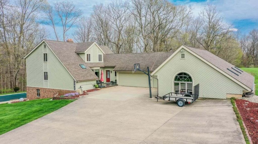 Escape to your own private country oasis on over 20 acres! Tucked deep off the road, this beautiful property offers the perfect mix of privacy, nature, and space to enjoy the outdoors. The land features woods, trails for four-wheeling, a creek, a large yard, and an in-ground pool ideal for summer entertaining.The home includes 4 bedrooms, 3.5 bathrooms, a 5-car garage with remotes, and a large workshop--perfect for vehicles, hobbies, business, and storage. The fully finished walkout basement offers a partial kitchen, living room, bedroom, and full bath, with direct access to the pool area, creating a great space for guests or entertaining. The primary suite was fully remodeled in 2022 and features custom cabinetry, tiled double sinks, dual shower heads, and a large walk-in tiled shower. Additional other features include new geothermal heating in 2026, new pressure tank in 2025, excellent storage throughout, and great outdoor entertaining space. Recent updates include new skylights, asphalt on over 700 ft. of driveway, newer well plumbing and electrical, and leaf guards installed around the entire home.