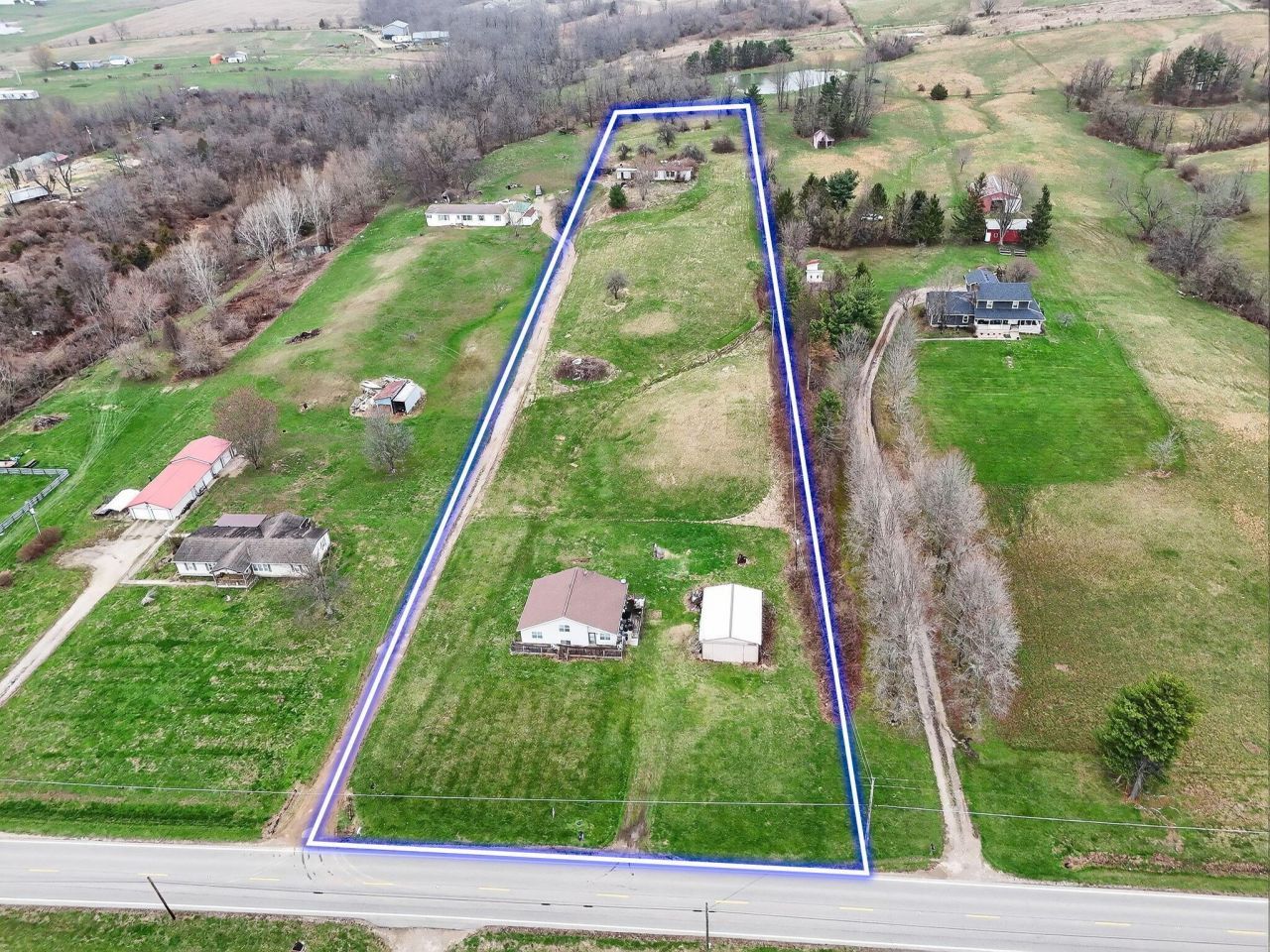 Many opportunities on this 5 acre parcel which includes the house, detached pole barn garage ( with separate service panel), and utilities that run to the rear of the property including electric and water. There is also a second drive way that runs to the rear of the property which is ideal for the construction of a second dwelling. Currently there is a mobile home there which the buyer will need to remove if they choose to do so. Property heats with propane. Will be sold as is. Nice country setting.